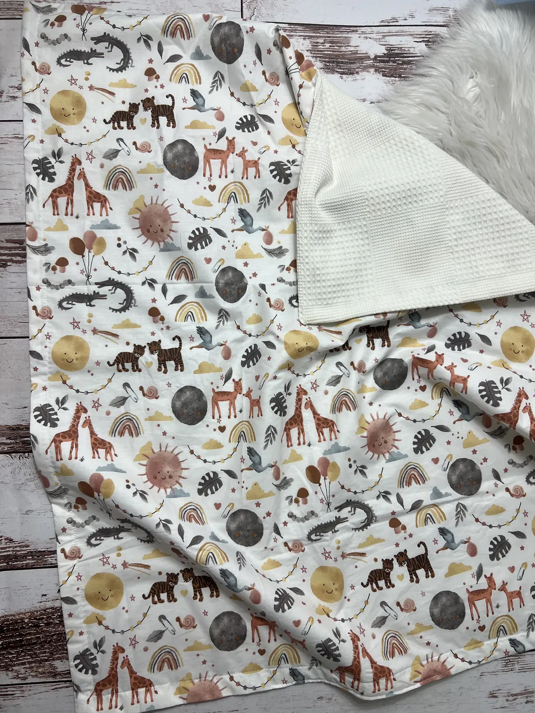 👶 100% pamučni waffle prekrivač za bebe (75×100 cm) – mek, nežan i udoban, dostupan u dezenima i jednobojnim varijantama. 🌿