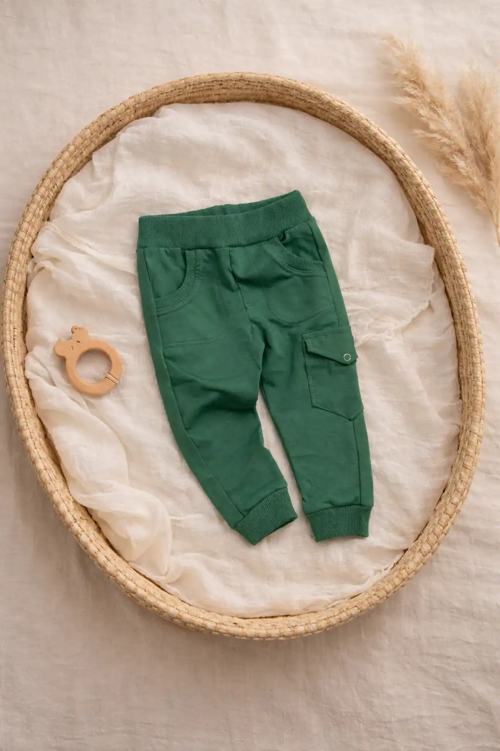 Udobne pantalone za bebe dečake izrađene od mekanog i kvalitetnog pamuka koji je nežan prema bebinoj koži. Elastičan pojas omogućava lako oblačenje i udobno nošenje tokom celog dana. Idealne su za svakodnevne aktivnosti, igru i šetnju, a lako se kombinuju sa bodićima i majicama.