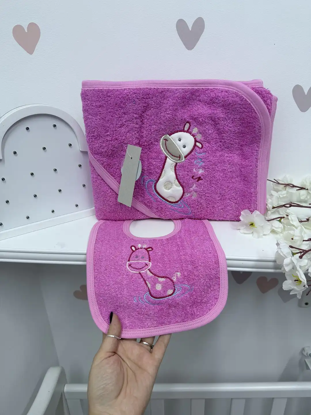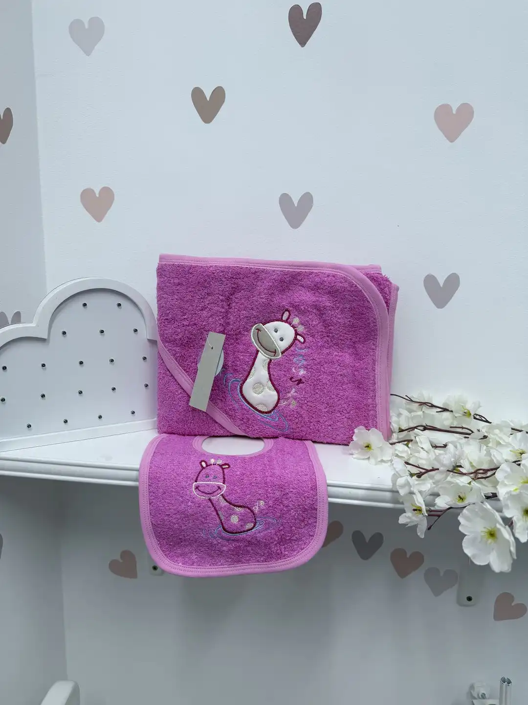 Peškir sa kapuljačom i portikla na poklon Ciklama žirafica