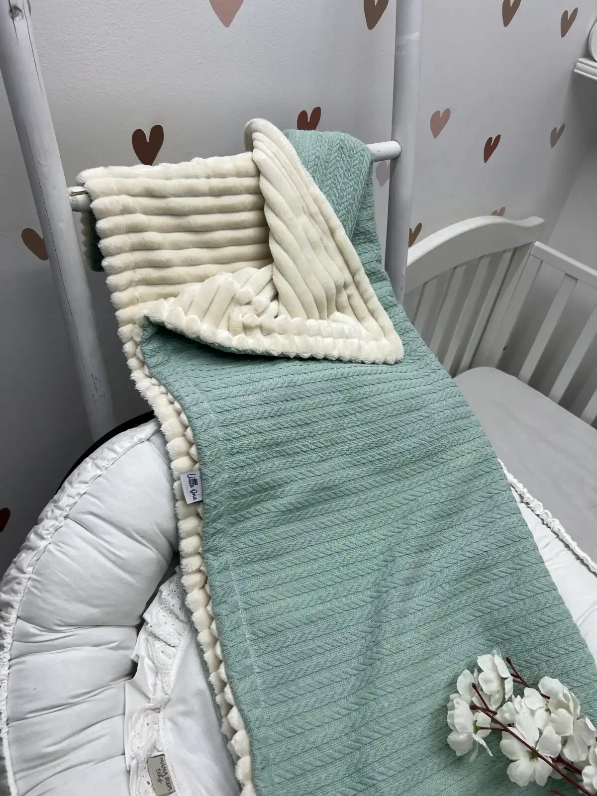 Jedna strana je od kvalitetne pletenine, dok je druga strana od izuzetno mekanog plara, idealnog za ušuškavanje i nežan dodir sa bebom 🤍