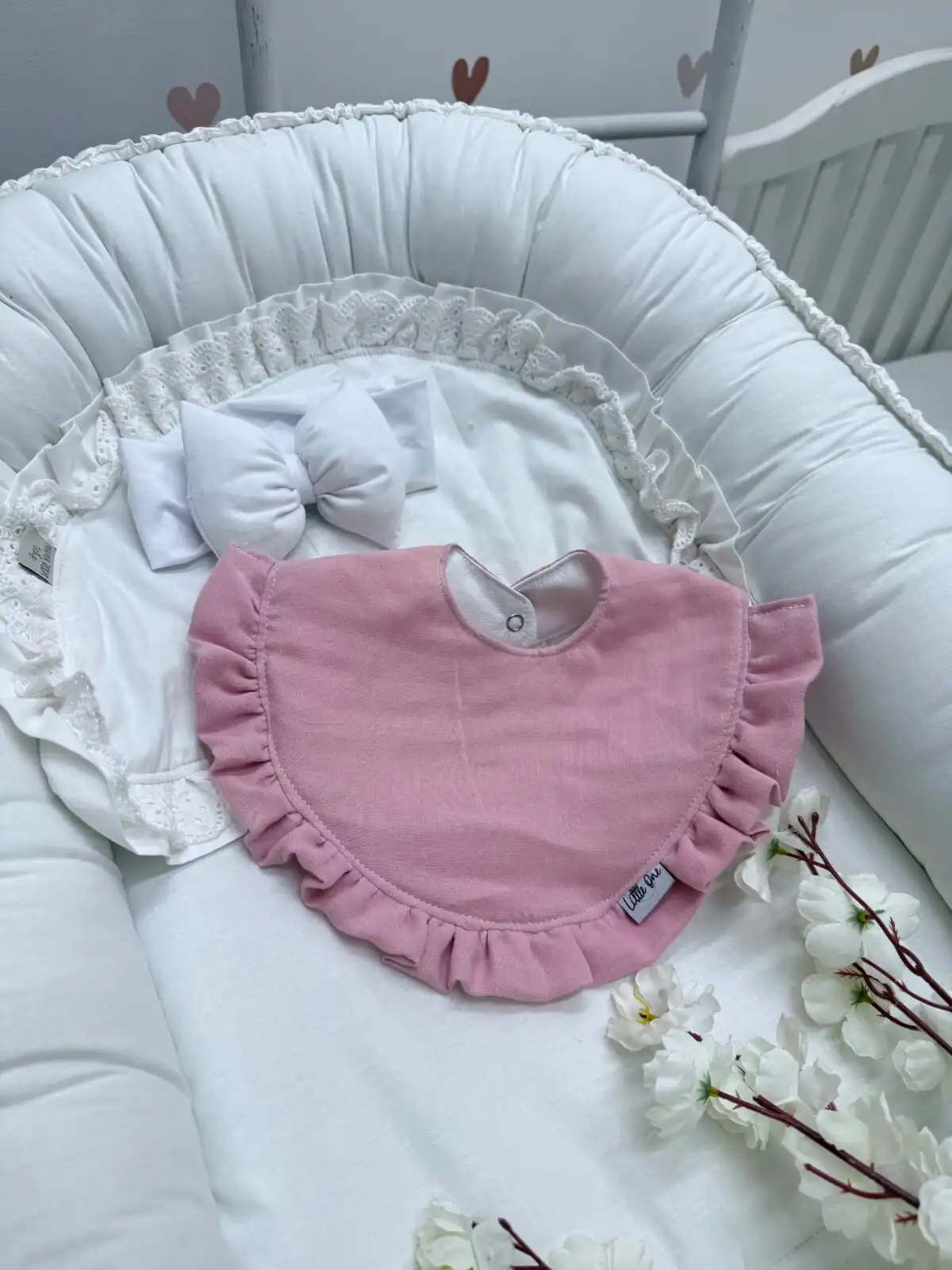 Portikla od muslina sa karnerom izrađena je od izuzetno mekanog i prozračnog materijala, nežnog prema osetljivoj bebinoj koži. Zahvaljujući upijajućoj strukturi muslina, portikla pruža pouzdanu zaštitu garderobe, dok dekorativni karner daje poseban, nežan i elegantan izgled. Praktična za svakodnevnu upotrebu, a istovremeno dovoljno lepa za posebne prilike, idealan je izbor za bebe i mališane 💕✨