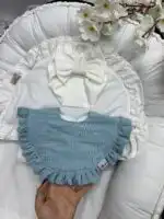 Nežna muslin portikla sa karnerom, mekana na dodir i sigurna za bebinu kožu, čuva garderobu i dodaje poseban, romantičan detalj svakom danu 🕊️🎀