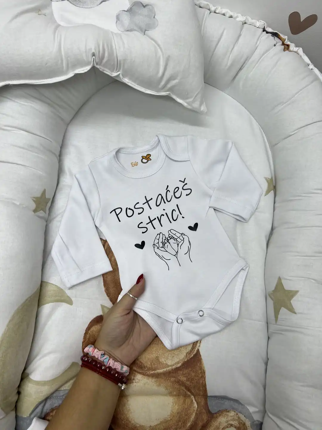 Pripremite se za najslađe iznenađenje u porodici sa našim bodićem „Postaćeš stric”! Ovaj simpatični bodić je savršen način da najavite dolazak novog člana porodice ili jednostavno izmamite osmeh budućem stricu. Uz ovaj slatki natpis, svi će sa oduševljenjem čekati da saznaju ko će biti taj poseban stric!