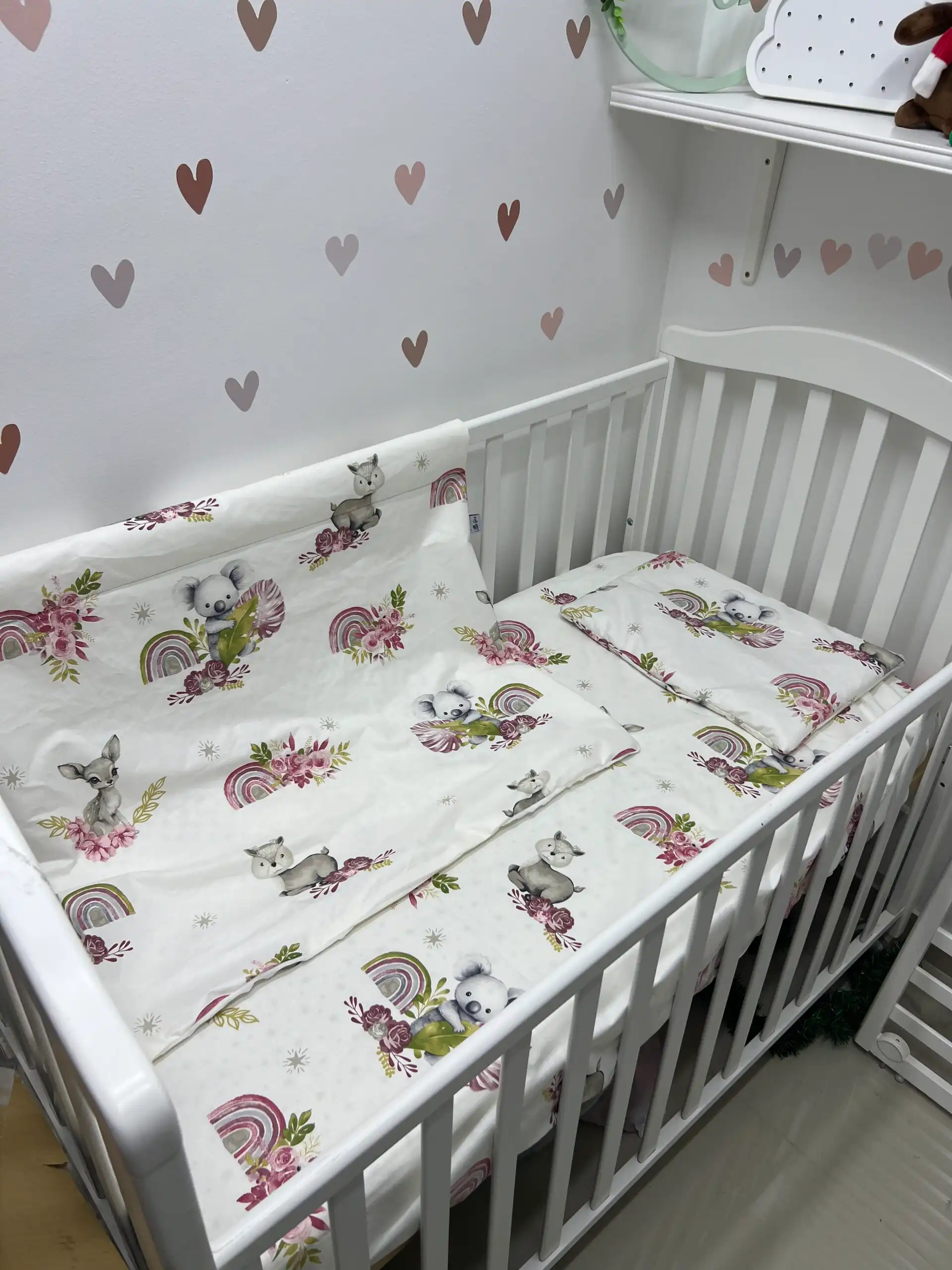 Svaki deo seta pažljivo je biran kako bi odgovarao nežnoj bebinoj koži i učinio krevetac pravim mestom za odmor i maženje.