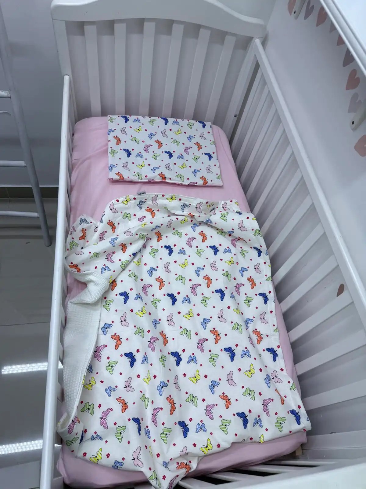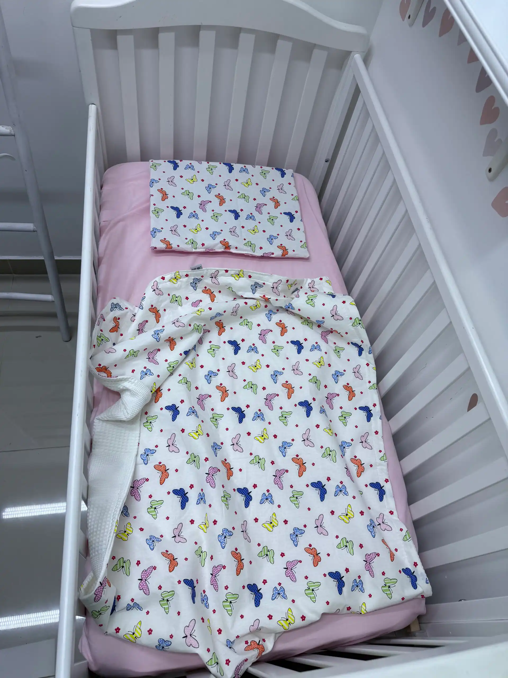 Svaki deo seta pažljivo je biran kako bi odgovarao nežnoj bebinoj koži i učinio krevetac pravim mestom za odmor i maženje.