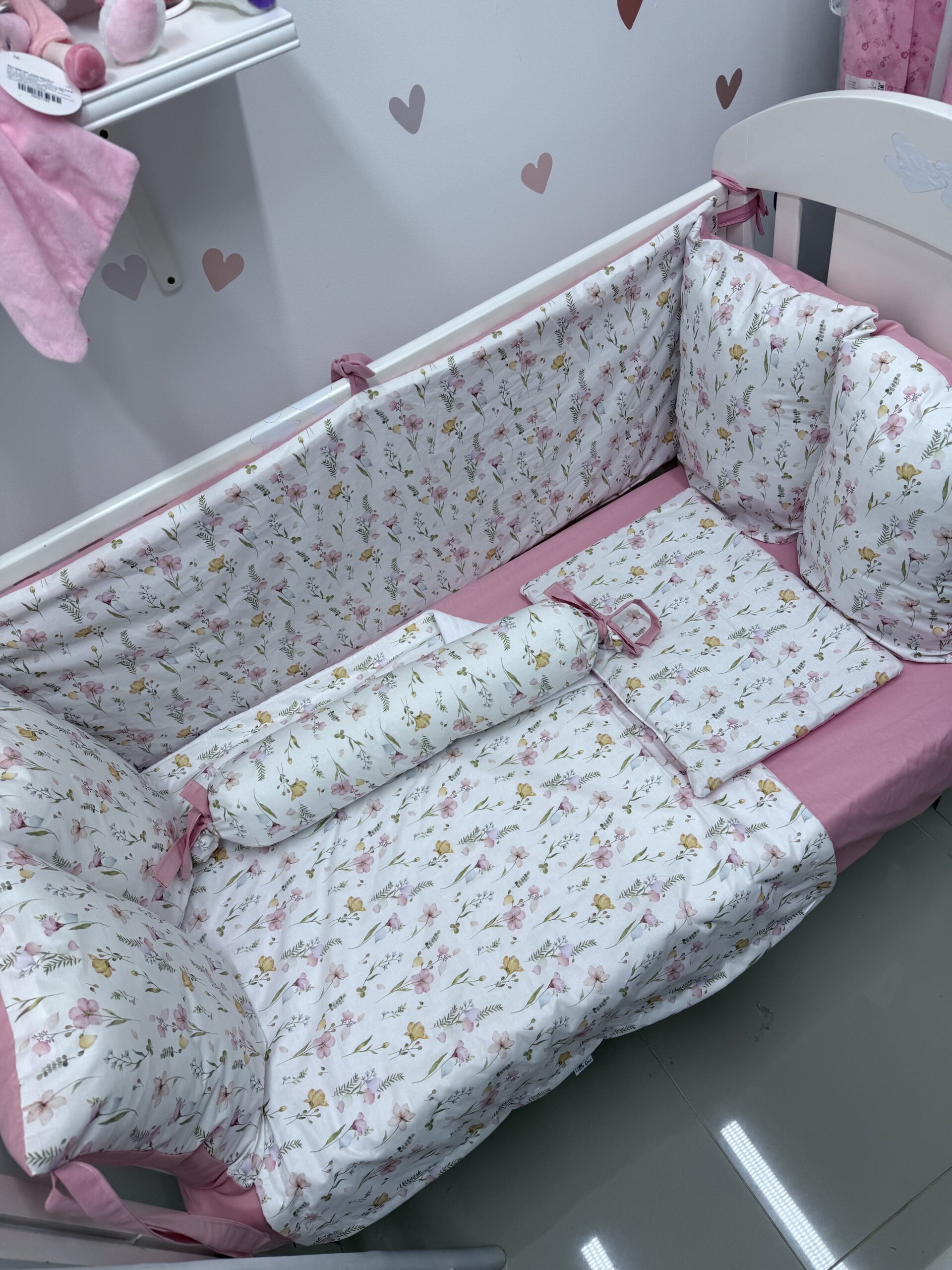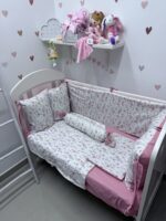 Nežan i praktičan set za sigurne snove – sadrži ogradicu, čaršaf sa lastišem, prekrivač i jastuče. Savršen spoj udobnosti i ljubavi za prve bebine dane. 💤💗