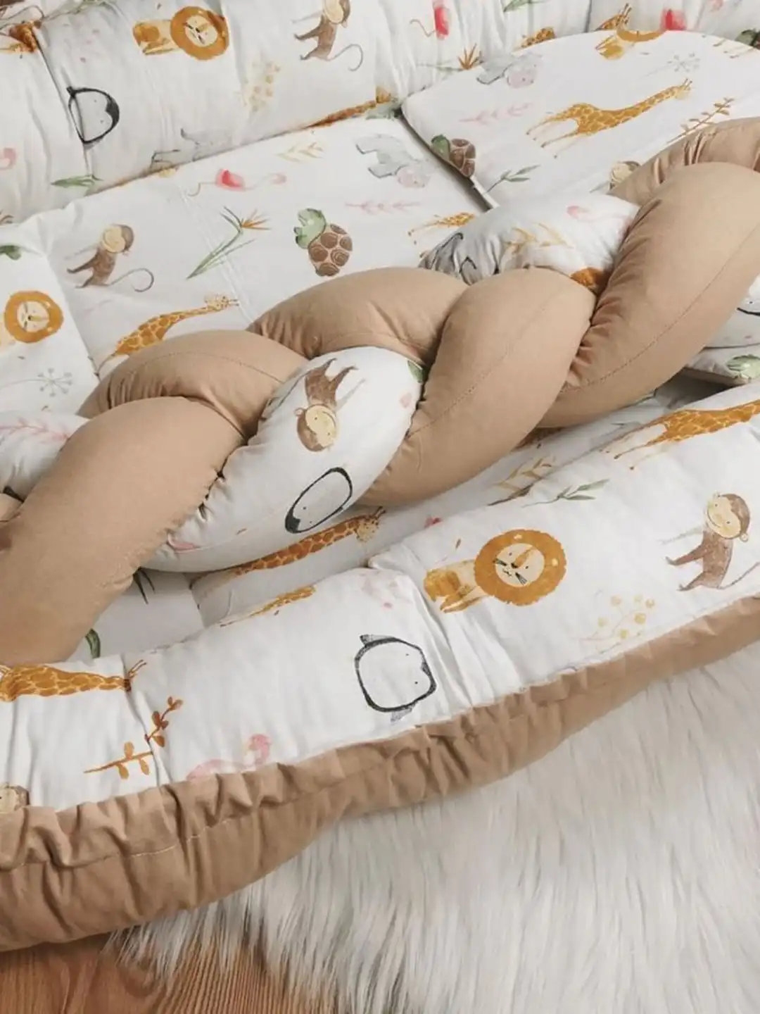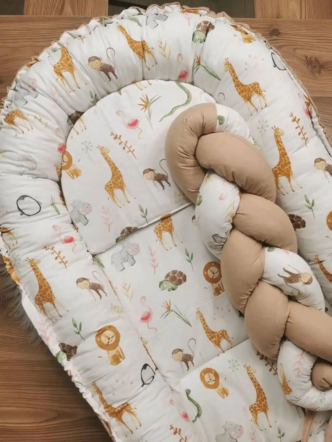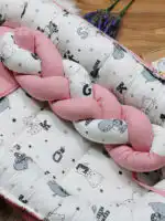 Ova pletenica dužine 70 cm je savršen pozicioner za vašu bebu, dizajniran da pruži sigurnost i udobnost u svakodnevnim aktivnostima. Mekani pamučni materijali obezbeđuju nežnu potporu bebi dok leži, sprečavajući neželjene pomake i pružajući stabilnost tokom spavanja ili odmora. Pletenica je izrađena sa pažnjom prema sigurnosti, a njen dizajn je estetski privlačan, dodajući šarm svakom prostoru. Idealna je za korišćenje u prvom periodu života bebe, kada je potrebna dodatna podrška i zaštita.