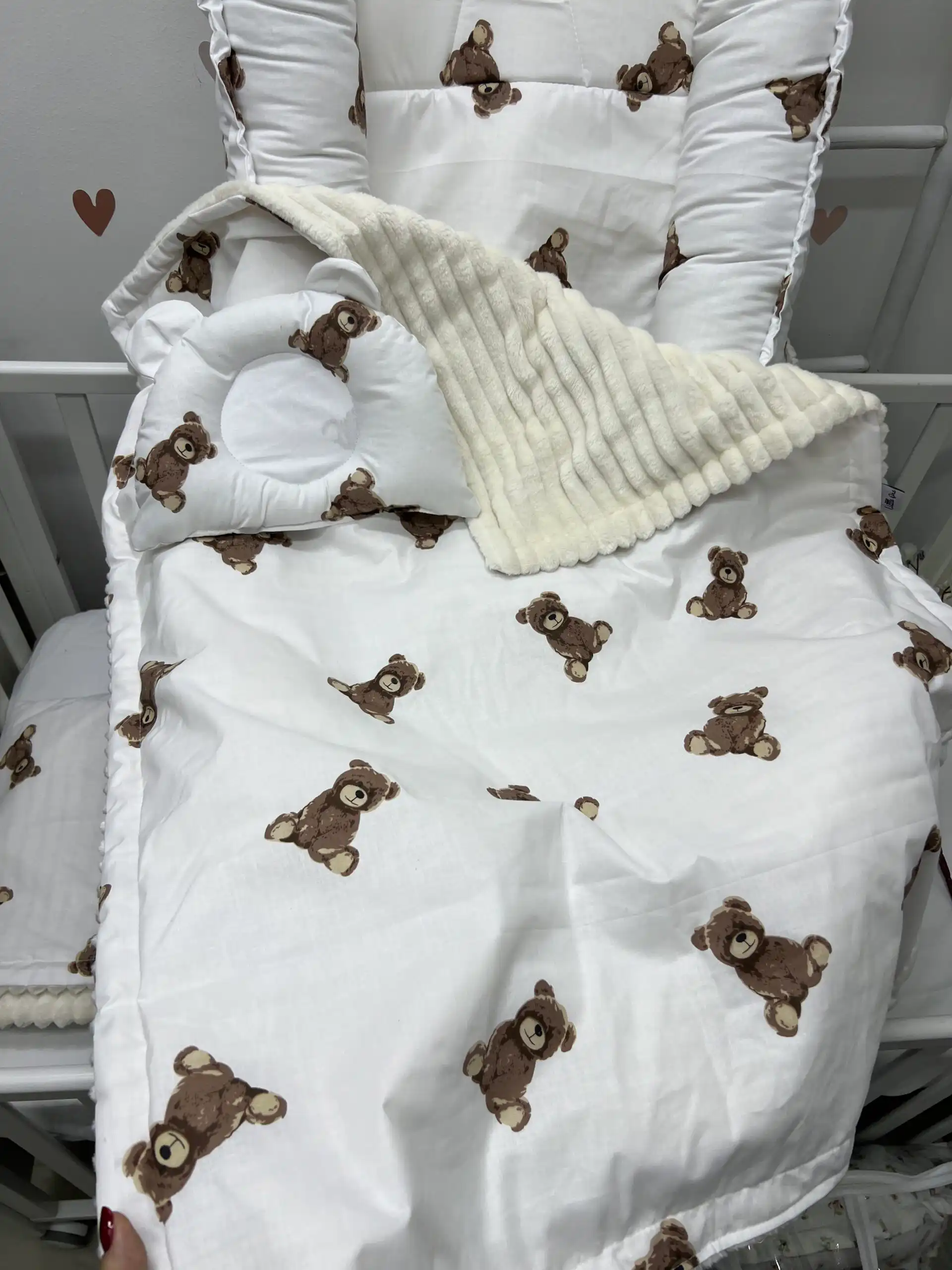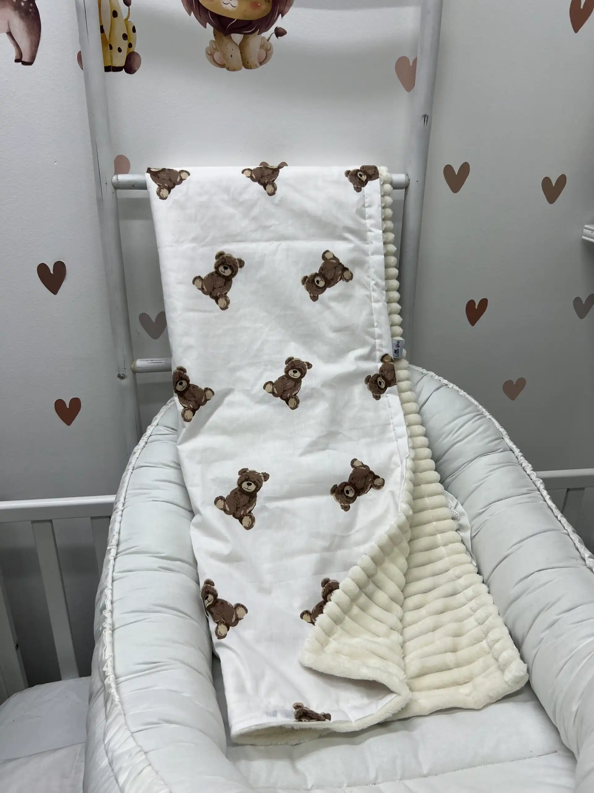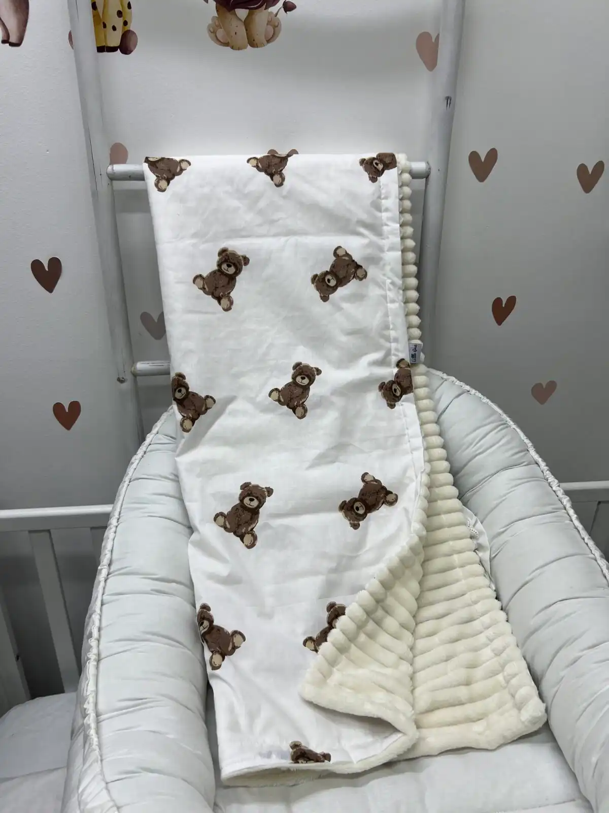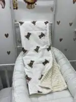 Prekrivač je izrađen sa jedne strane u nežnom dezenu, dok je sa druge strane mekan polar, poput ćebenceta, koji pruža dodatnu toplinu i ušuškanost 👶✨