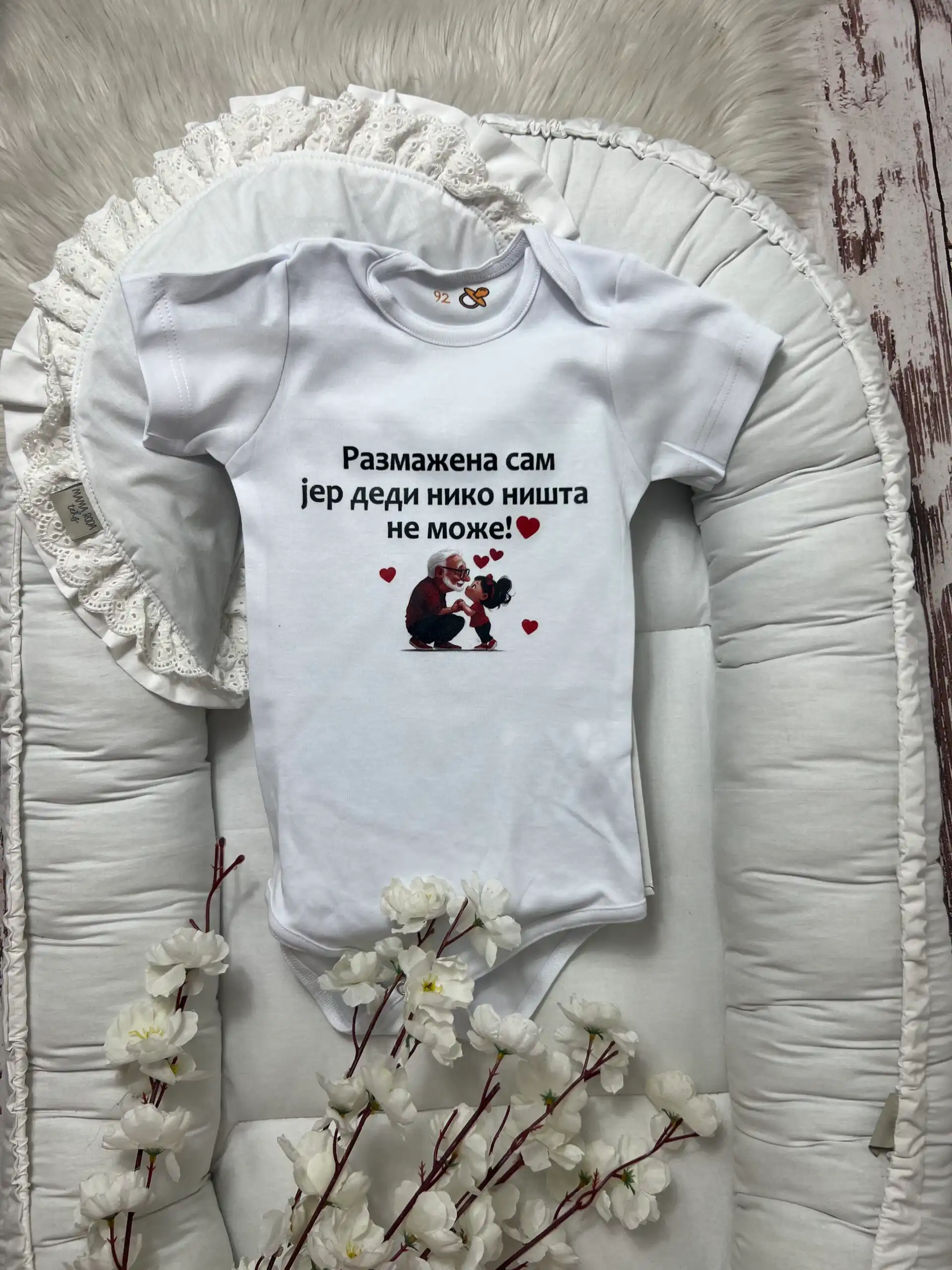 Predstavljamo vam presladak bodić sa natpisom „Razmažena sam jer dedi niko ništa ne može“ – idealan za sve male mezimice i njihove nezaustavljive dede!