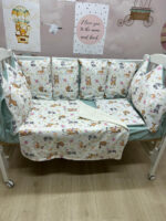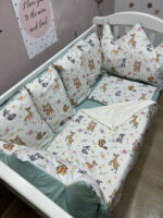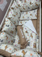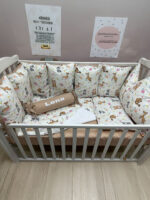 Royal posteljina uključuje jastuke za tri strane kreveca, sa vezicama koje omogućavaju sigurno pričvršćivanje za krevetac, i navlake koje se lako skidaju. U setu dolaze i čaršaf sa lastišem, prekrivač i ravni jastuk. 🛏️✨