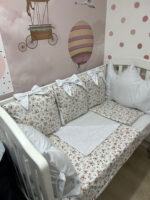 Royal posteljina sadrži jastuke za tri strane, sa vezicama pomoću kojih se pričvršćuju za krevetac, i mašne koje se skidaju, uz to dolaze dušek, čaršav sa lastišem, prekrivač i ravni jastuk. Ono što bismo naglasili , jeste da se navlaka sa jastuka ne skida!