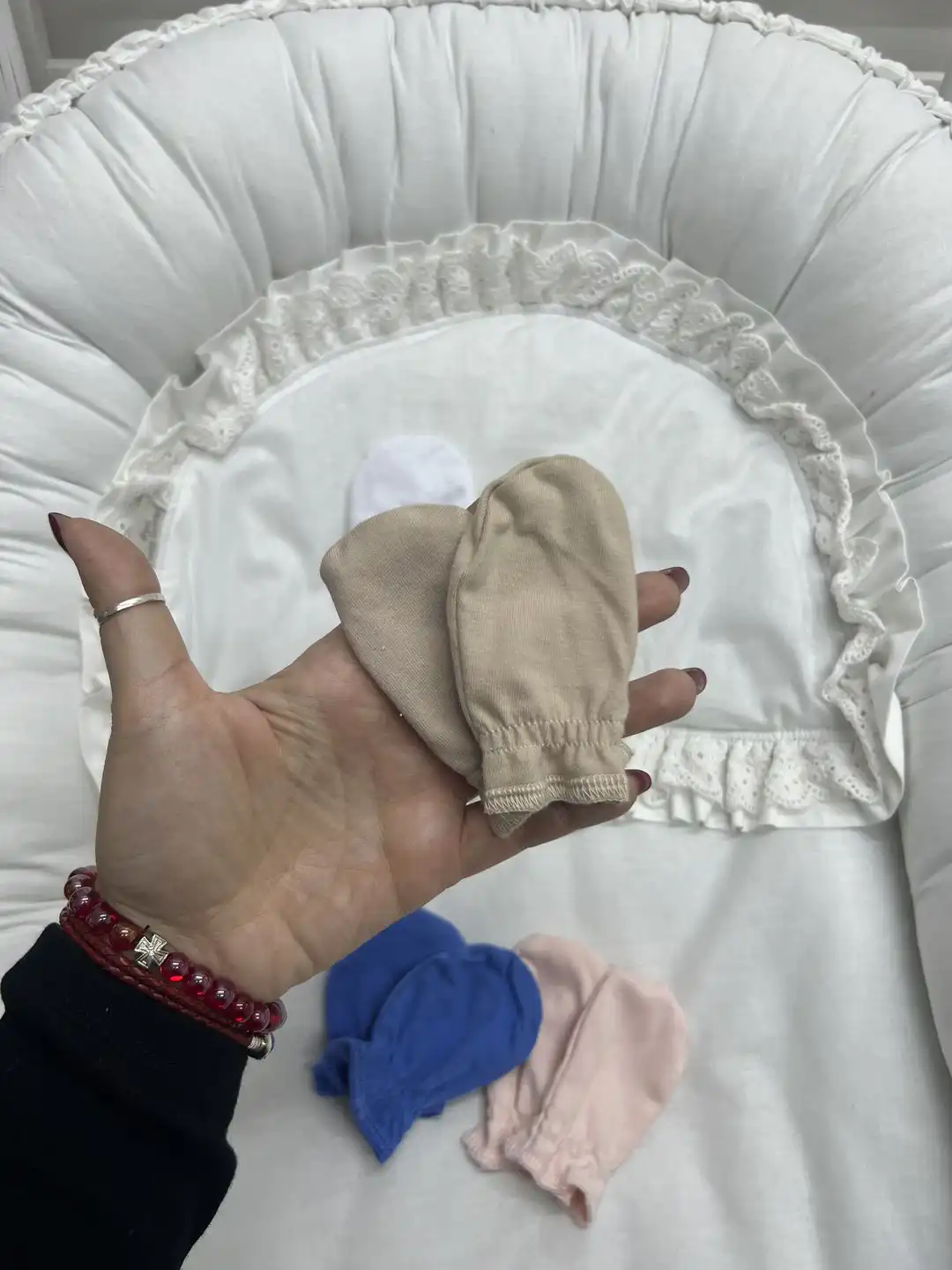 Ove mekane i udobne pamučne rukavice u bež boji su savršen izbor za vašu bebu. Dizajnirane da pružaju zaštitu od ogrebotina i da održavaju toplinu, idealne su za novorođenčad. Napravljenje od visokokvalitetnog pamuka, ove rukavice su nežne prema osetljivoj koži vašeg mališana.