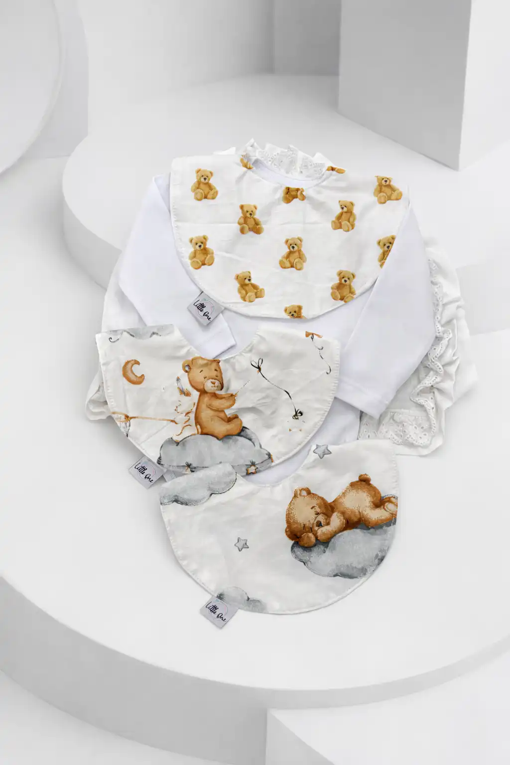 Set od 3 pamučne portikle, dizajnirane da pruže maksimalnu zaštitu i udobnost tokom svakodnevnog hranjenja. Izrađene su od mekanog, prijatnog pamuka, sa nepromočivim slojem koji efikasno sprečava prolazak tečnosti i štiti bebinu garderobu. 👶💧