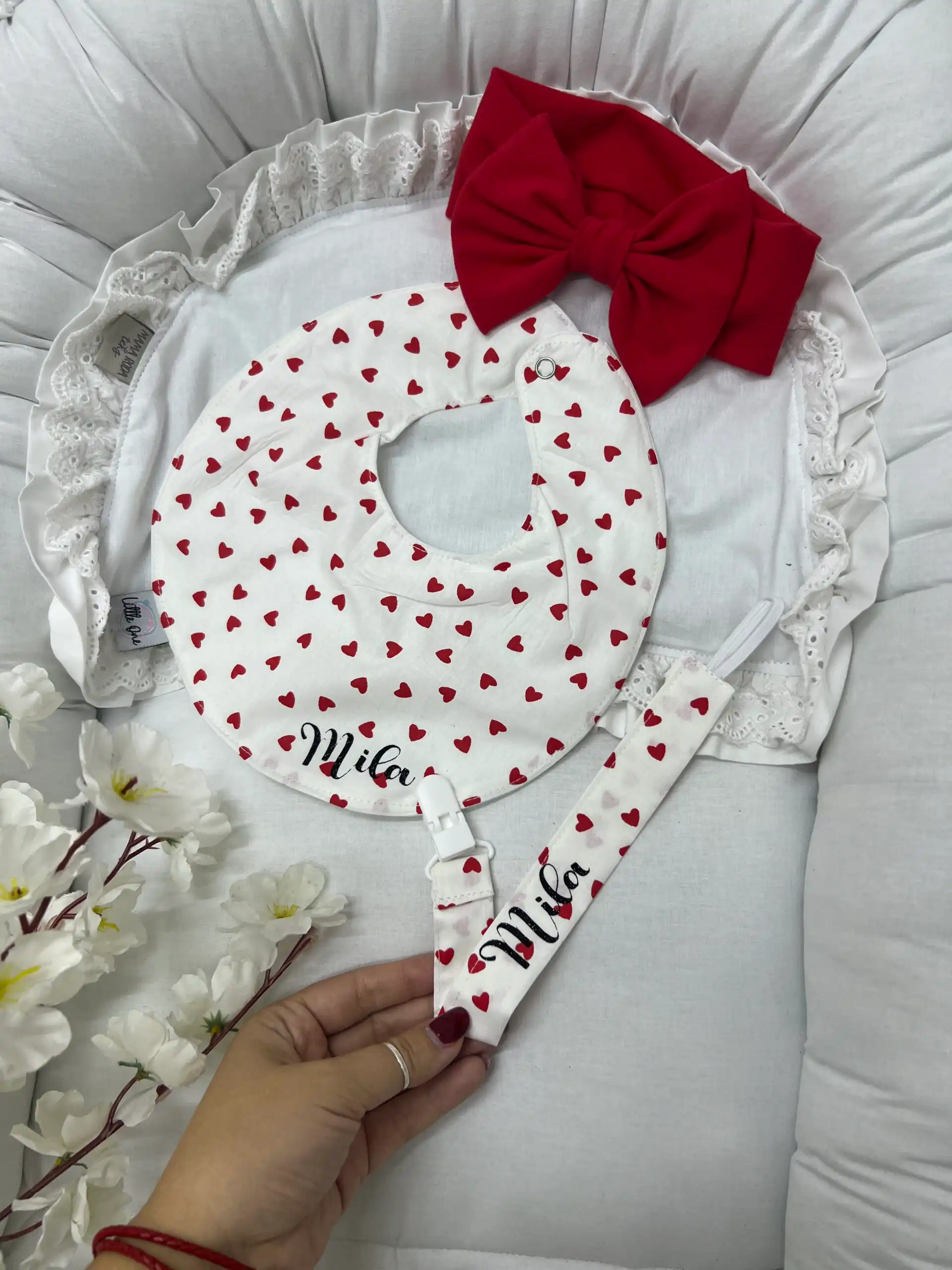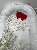 Set za bebe koji se sastoji od portikle u prelepom dezenu sa srcima, pamučne vezice za dudu i matching trakice za kosu, idealan je za mališane! 💖👶 Ovaj set je izrađen od izuzetno mekog pamuka, nežnog prema bebi koži, i pruža udobnost tokom svih dnevnih aktivnosti. Portikla u veselom dezenu sa srcima dodaje šarm, dok pamučna vezica za dudu i trakica za kosu savršeno upotpunjuju celokupni izgled vašeg mališana. Set dolazi u elegantnoj kutiji, što ga čini odličnim poklonom!