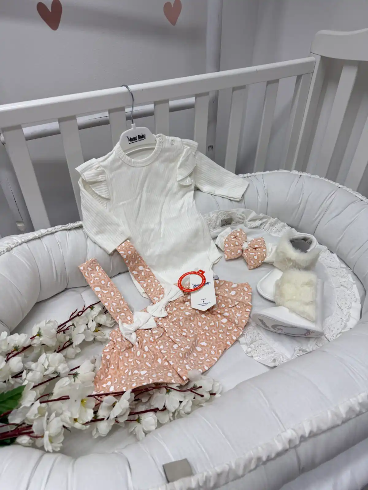 Svečani set za bebe koji se sastoji od bodića, suknje na tregere i trakice za kosu. Elegantno usklađen, idealan za posebne prilike poput proslava, rođendana i porodičnih okupljanja. Izrađen od prijatnih materijala koji obezbeđuju udobnost tokom nošenja, uz detalje koji daju poseban i nežan izgled 🤍🎀
