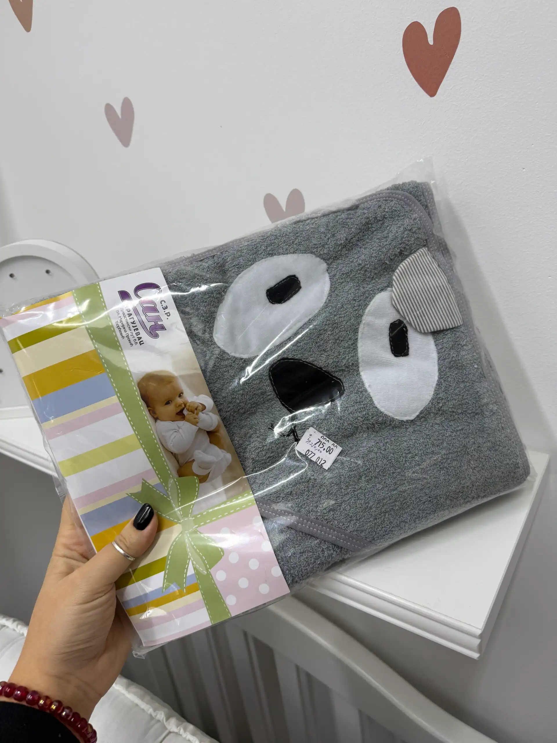 Set peškir sa kapuljačom + portikla – sivi kuca