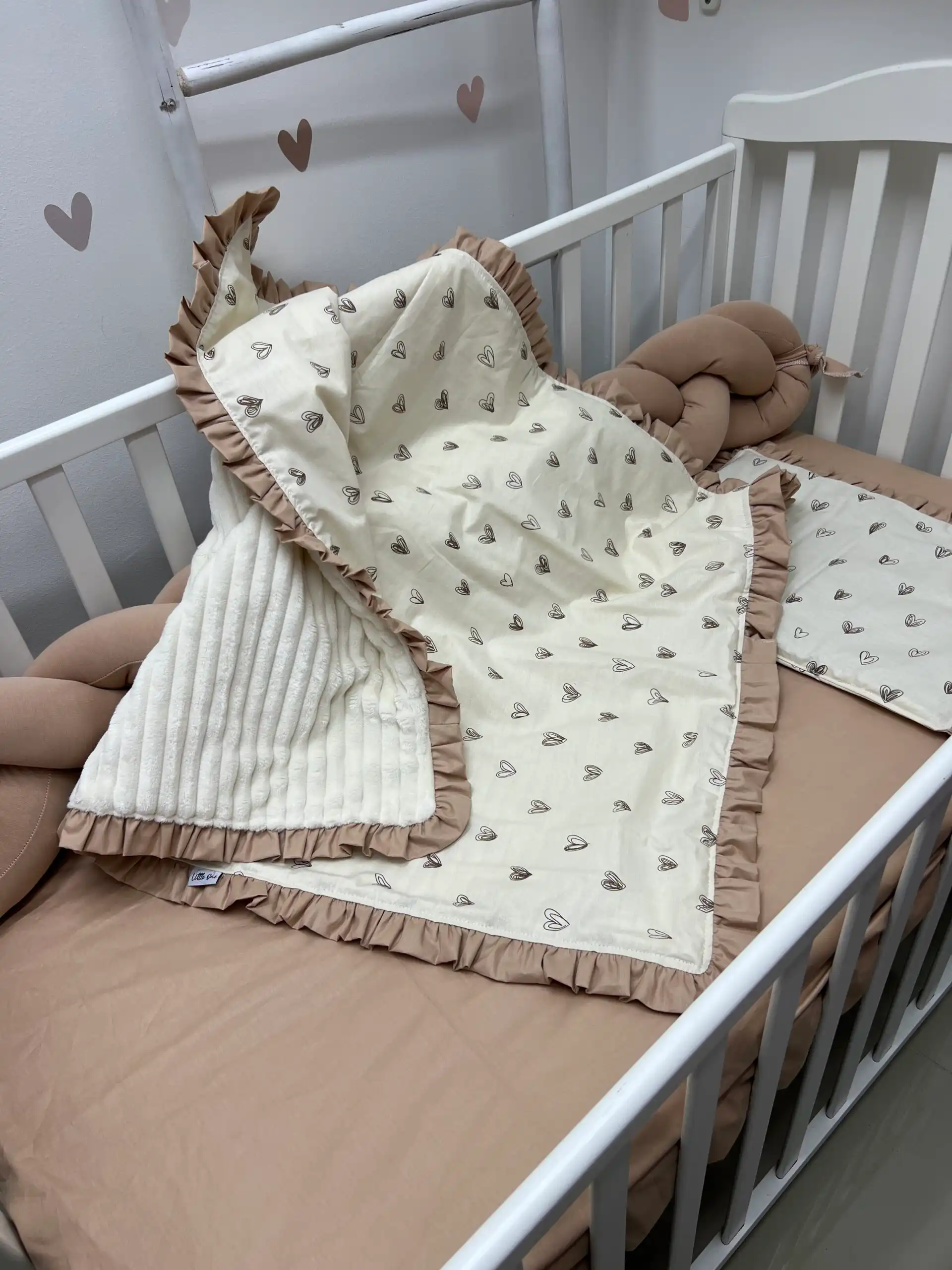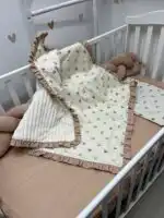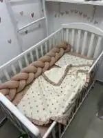 Bebi posteljina nežnog dizajna sa pletenom ogradicom pruža udobnost, toplinu i sigurnost tokom sna 👶🤍