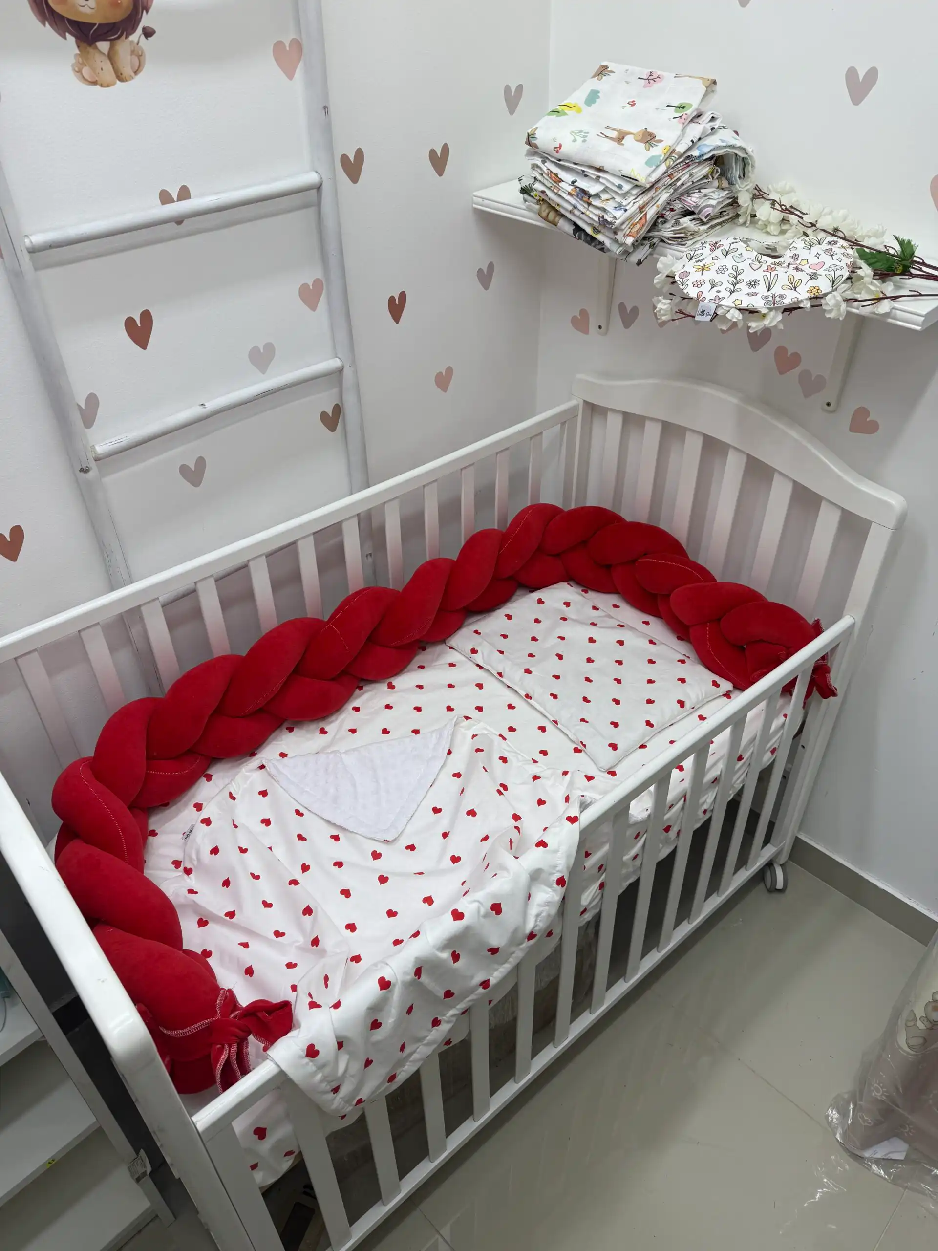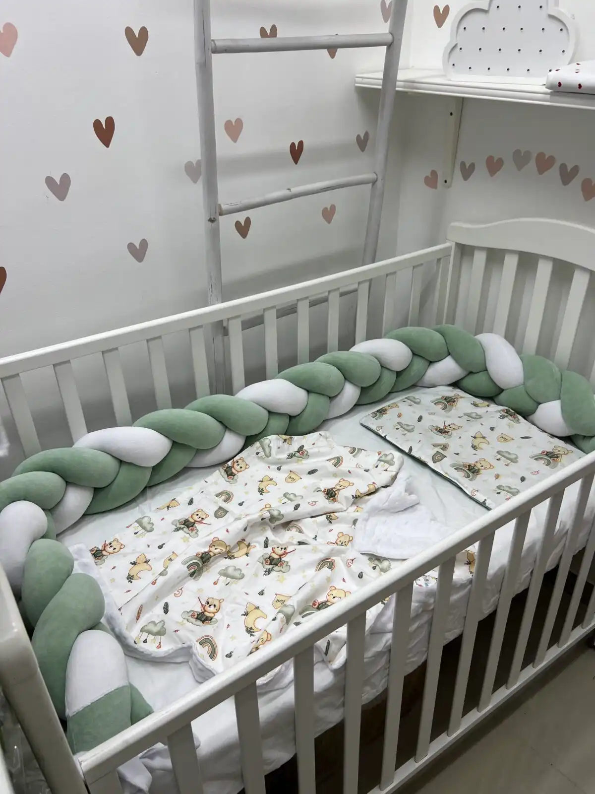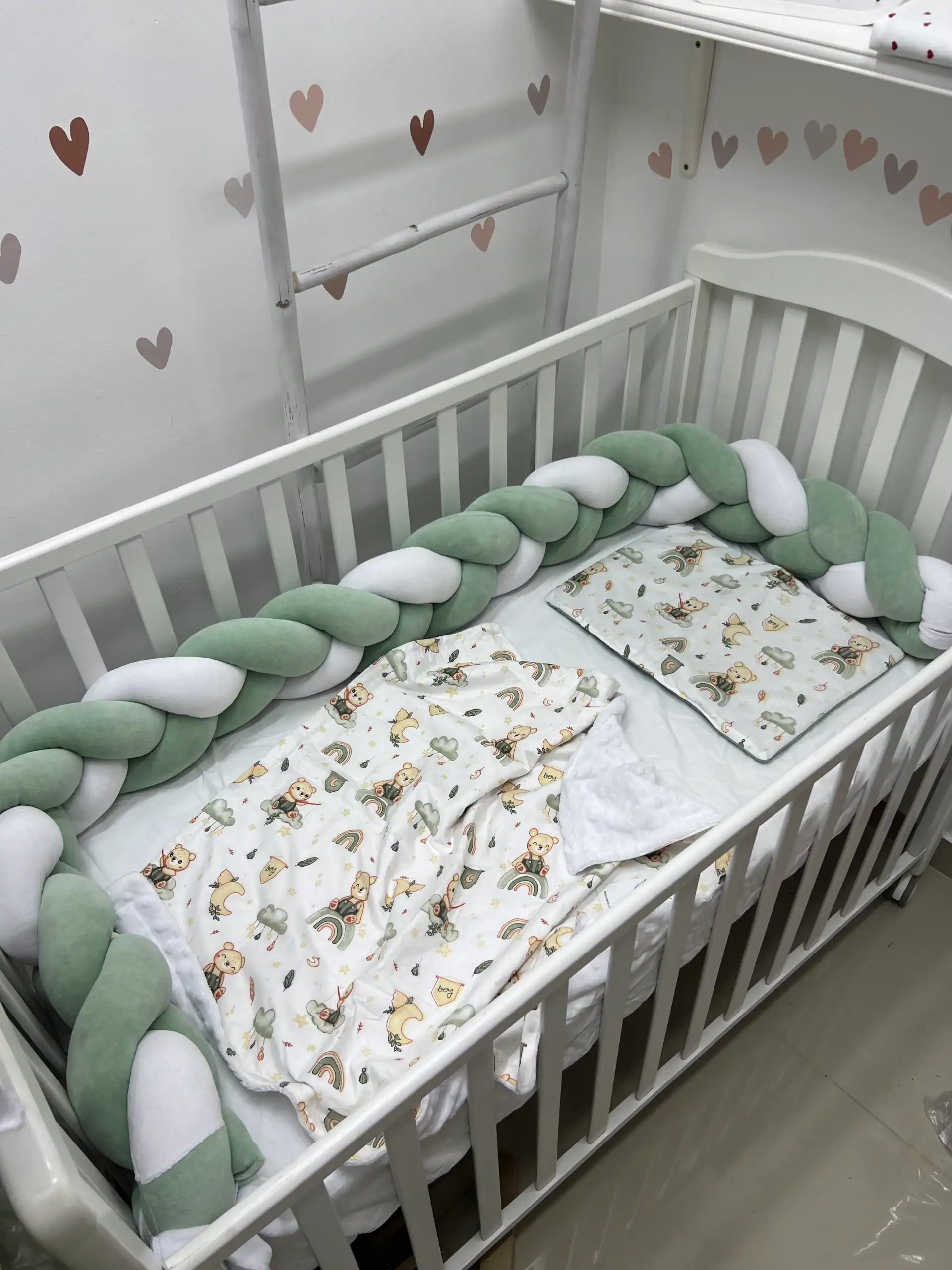 Bebi posteljina nežnog dizajna sa pletenom ogradicom pruža udobnost, toplinu i sigurnost tokom sna 👶🤍