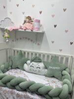 Set posteljine za krevetac – Nasmejani oblačak (žalfija zelena) ☁️🌸✨