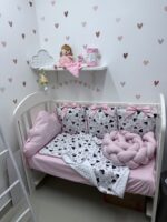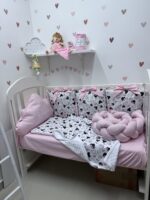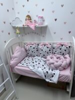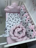 Na bočnoj strani , nalazi se set jastučića sa slatkim mašnama, koji dodaju šarm i luksuz svakom krevetu. 🎀✨ Za preostale dve strane, tu je pletenica duga 180 cm, koja daje posebnu notu udobnosti i zaštite. 🛏️