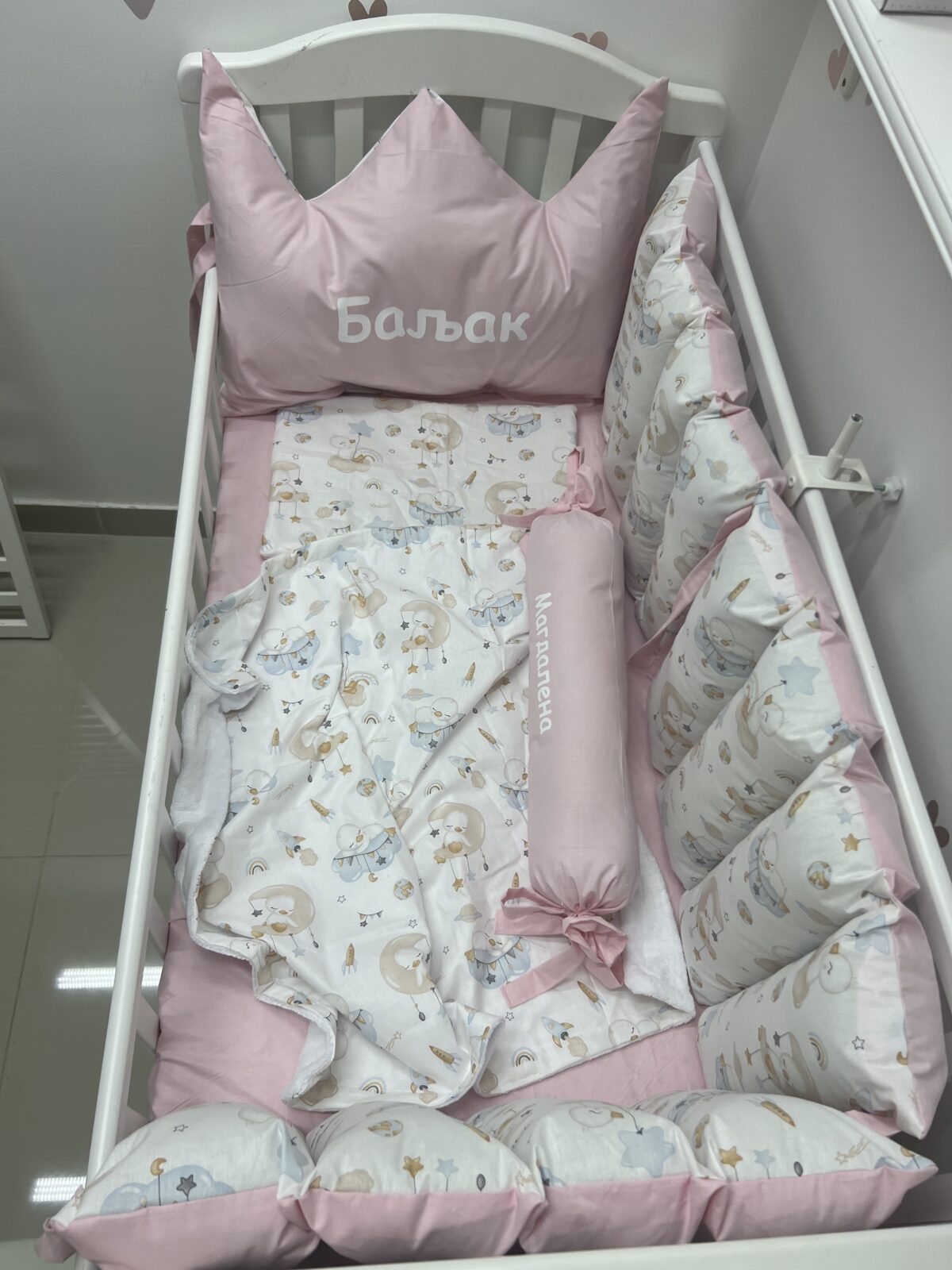 Set Royal Tarabica osmišljen je tako da bude lep, a istovremeno funkcionalan. 🤗 Tarabica je idealna za situacije kada želite jastuke, a da ne zauzimaju puno mesta. Set sadrži tarabicu za dve strane i krunu za uzglavlje, uz standardni dodatak: prekrivač, ravni jastuk i čaršav za dušek sa lastišem.