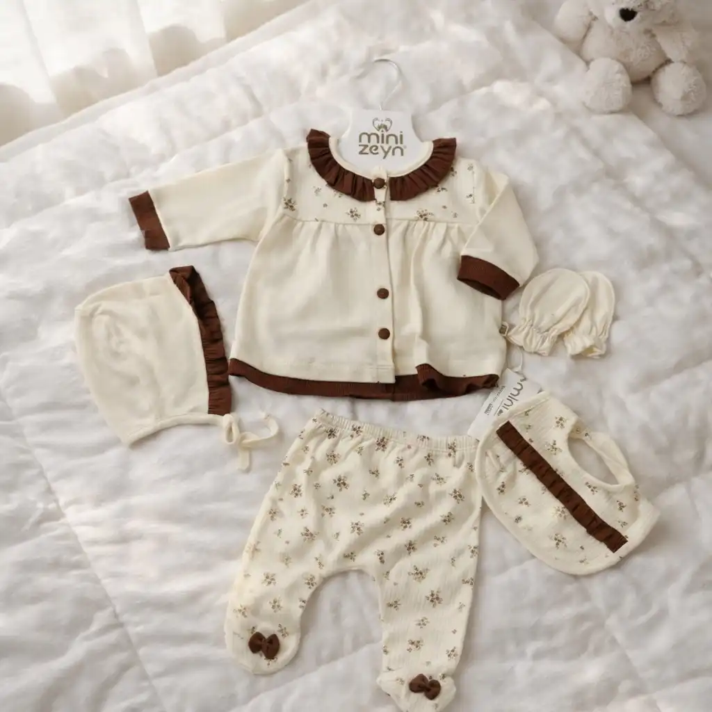 Set za novorođenče / bež/braon čipkica