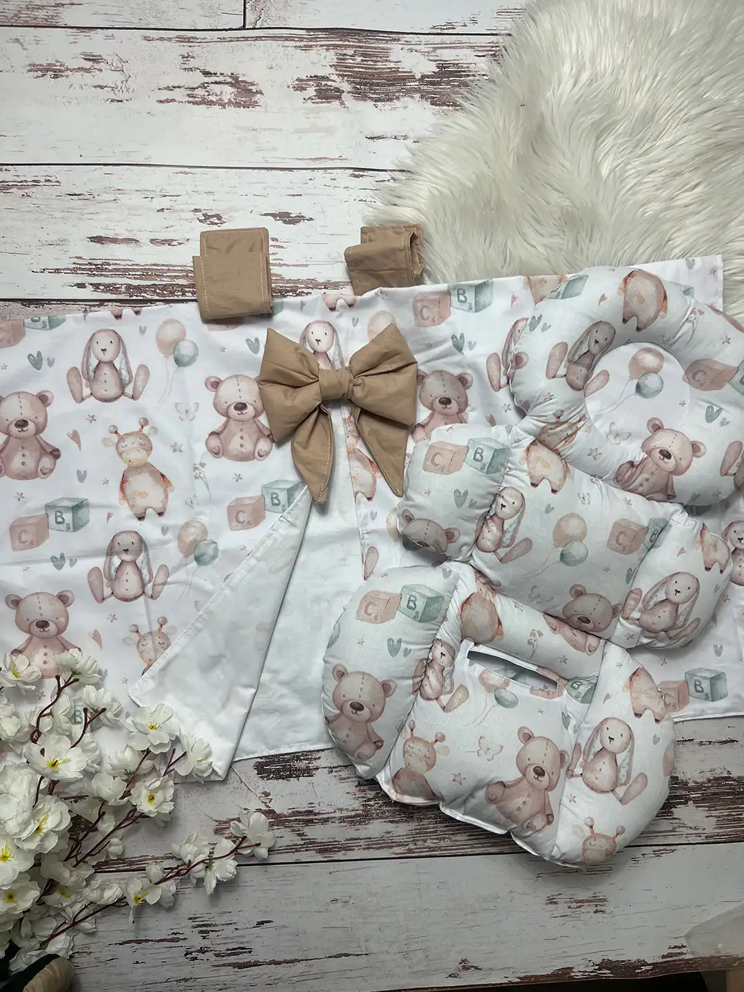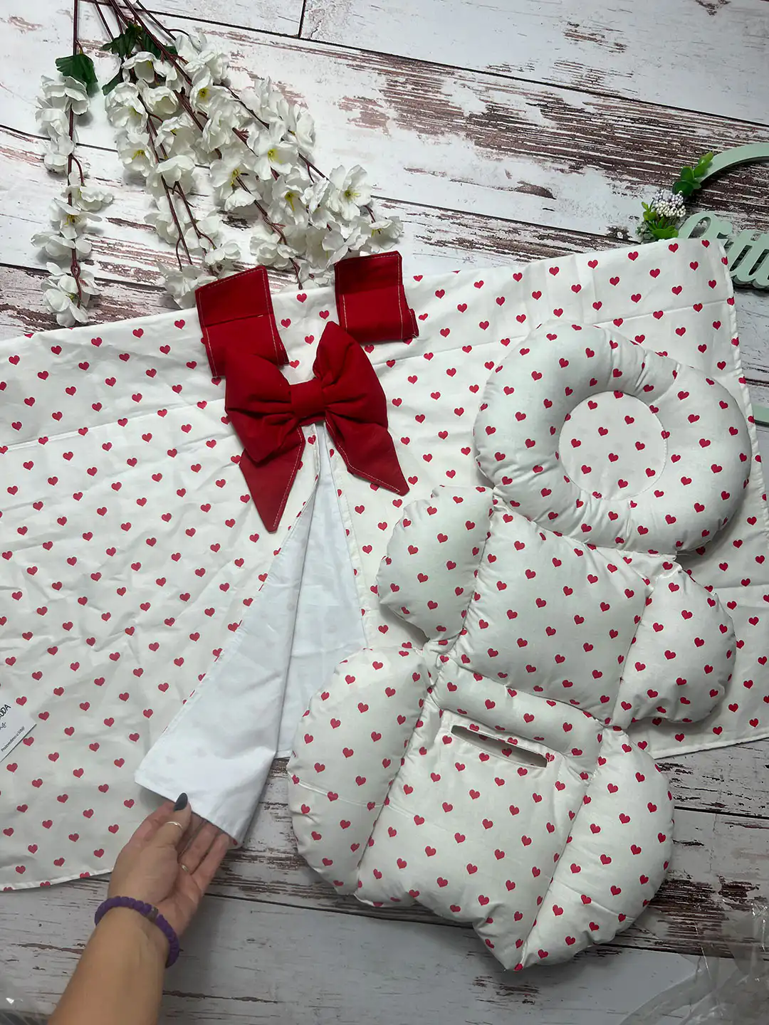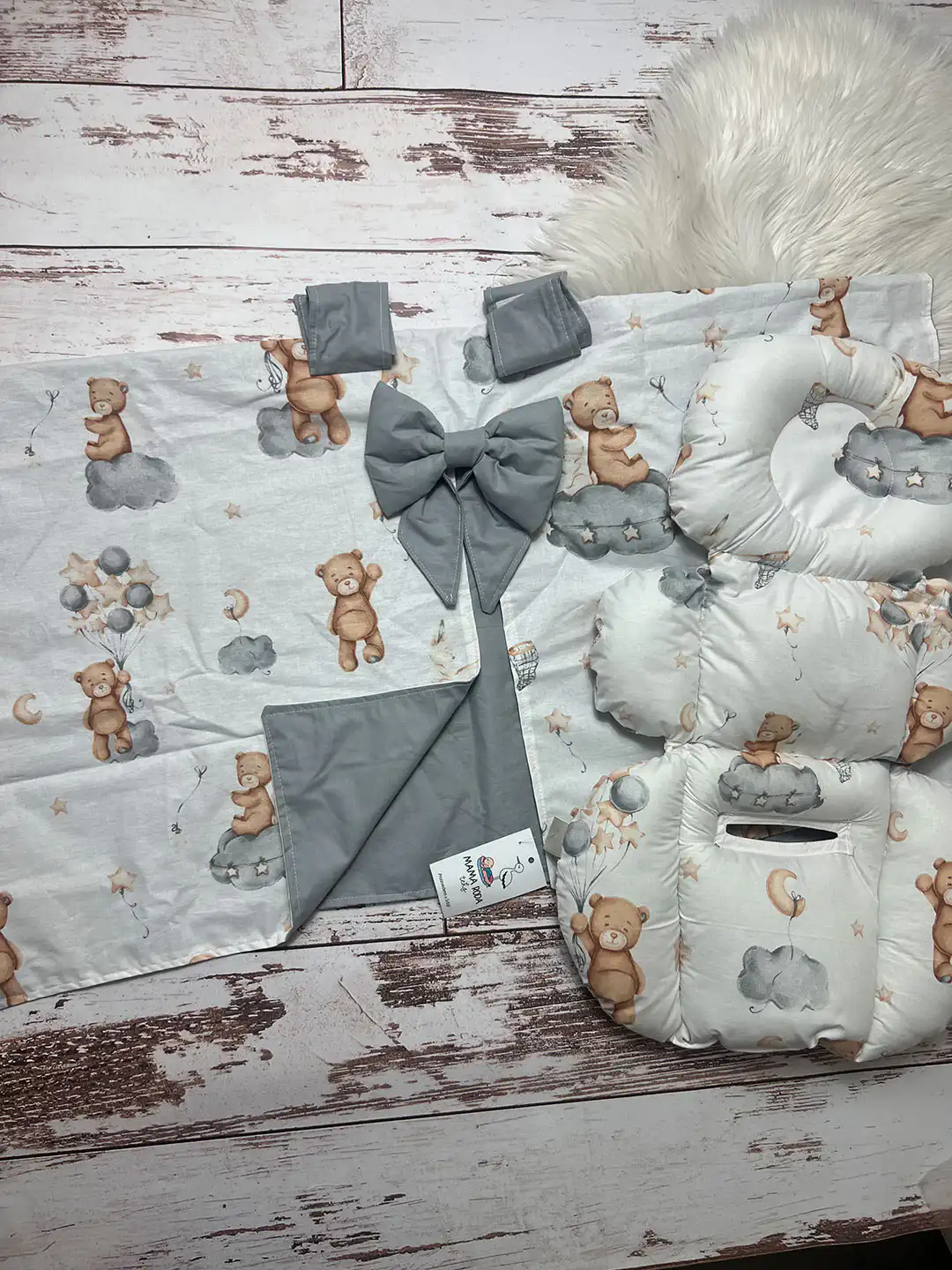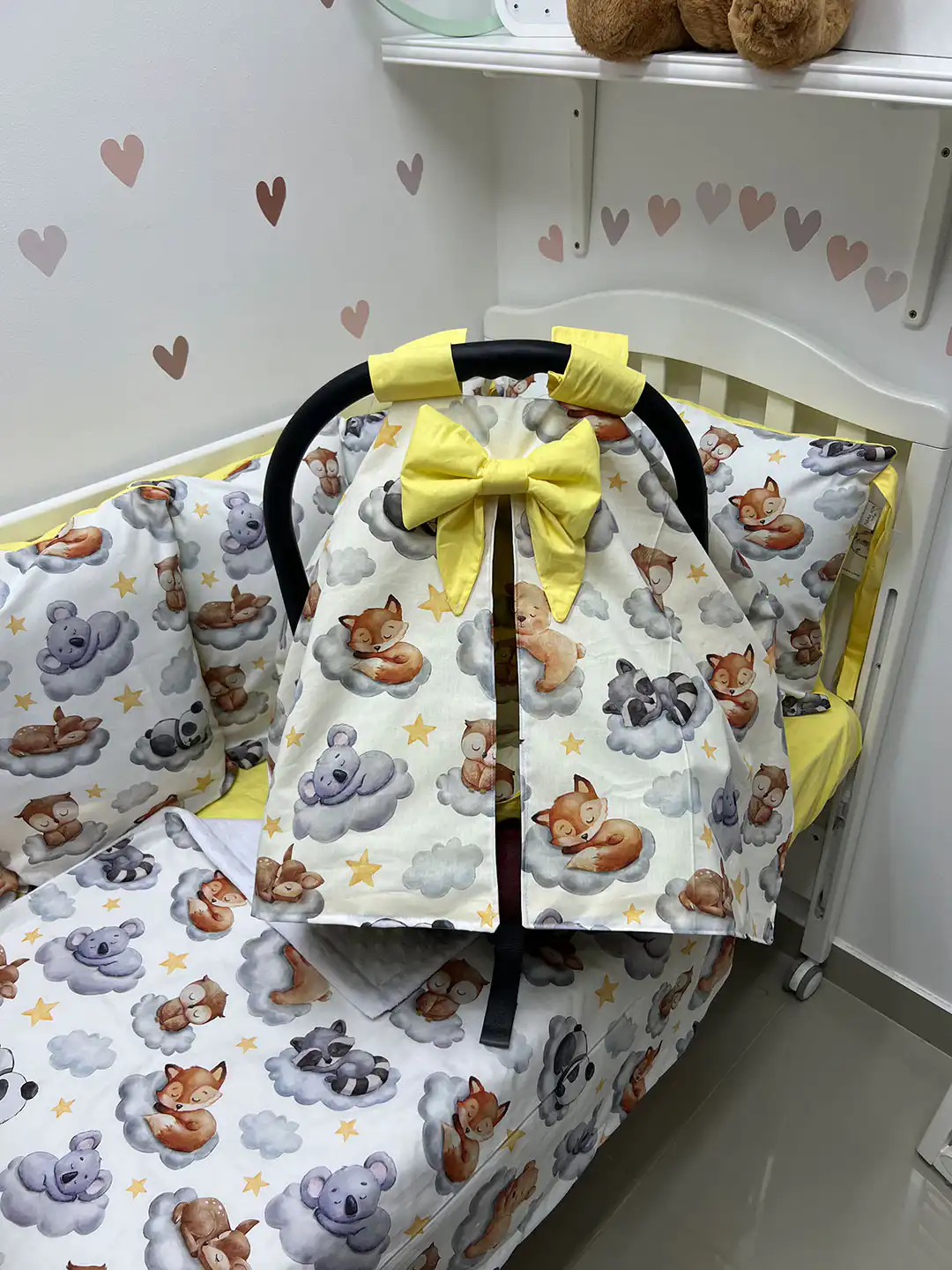 Ovaj set, koji sadrži prekrivač i jastuče, pruža bebi dodatnu toplinu, udobnost i zaštitu od spoljašnjih uticaja. Mekan, prozračan i praktičan, osmišljen je tako da bude i funkcionalan i estetski privlačan.