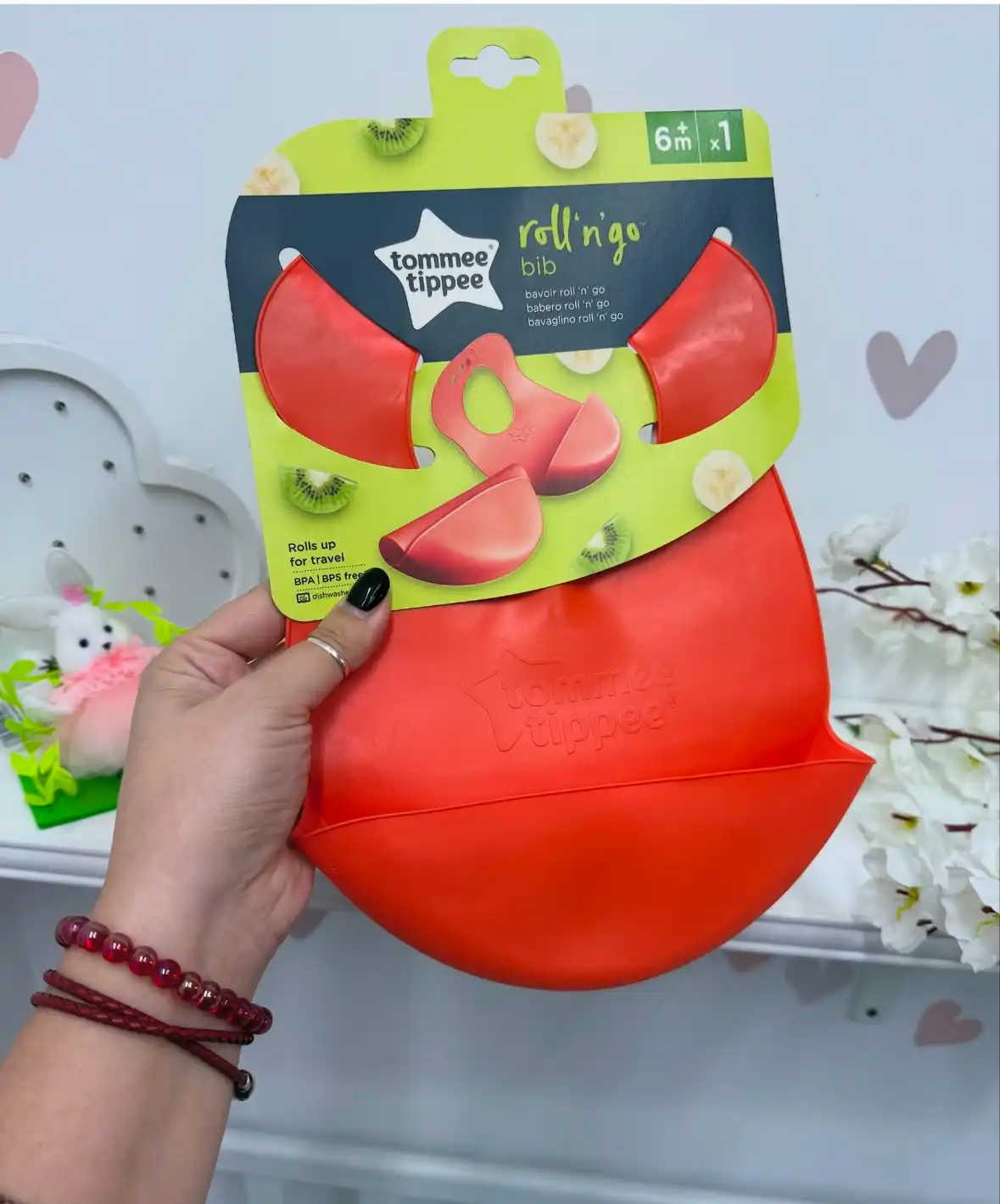 Predstavljamo vam Tommee Tippee silikonsku portiklu sa džepom za hranjenje ā praktiÄnu, udobnu i u prelepoj narandzastoj boji!