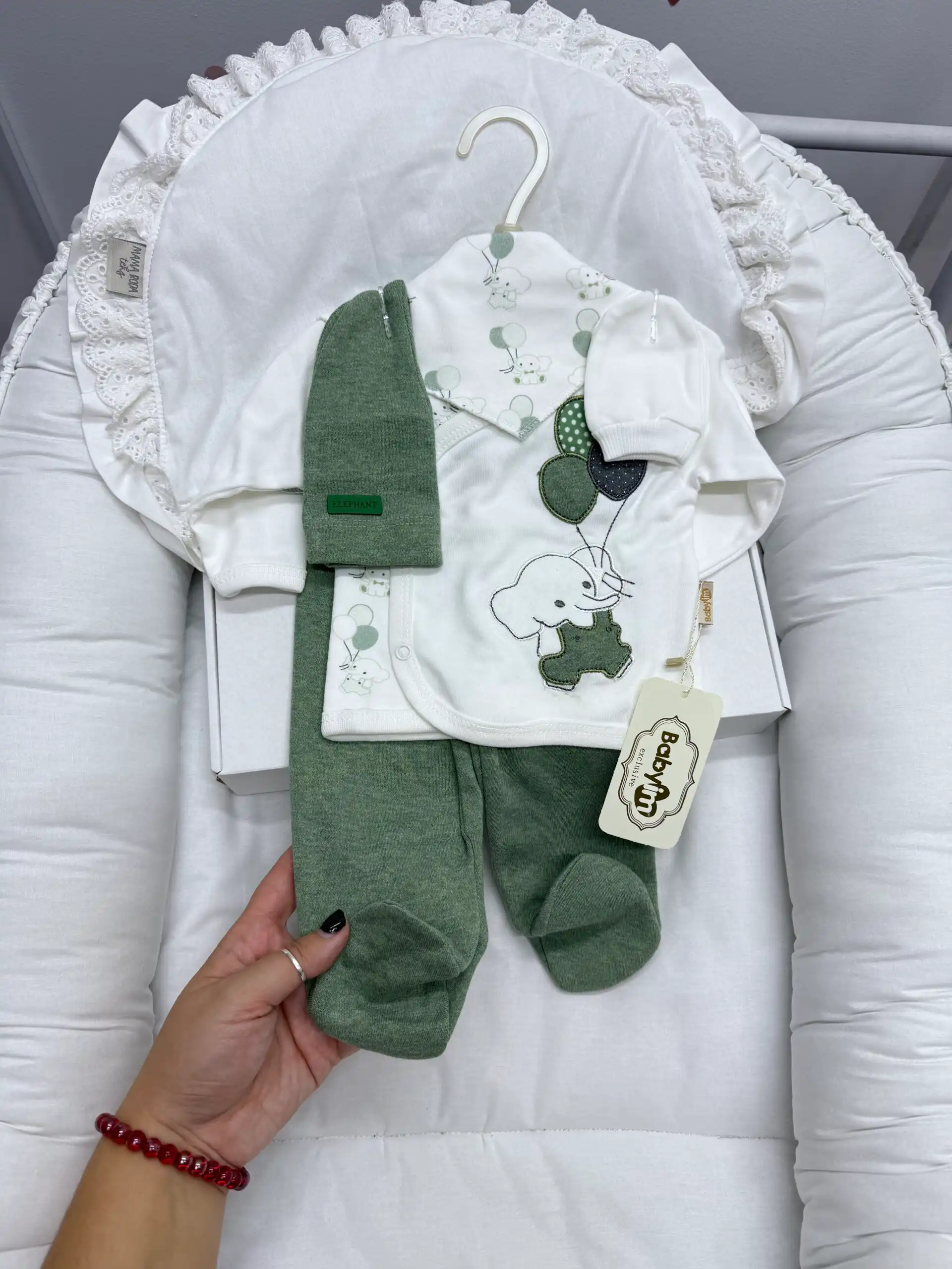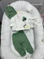 Set sadrži pet pažljivo uklopljenih komada garderobe, dizajniranih sa posebnom pažnjom na praktičnost, lako oblačenje i slobodu pokreta 👣✨ Svaki deo seta ima prijatne šavove i kroj prilagođen novorođenčetu, kako bi se beba osećala sigurno i ušuškano 🤍