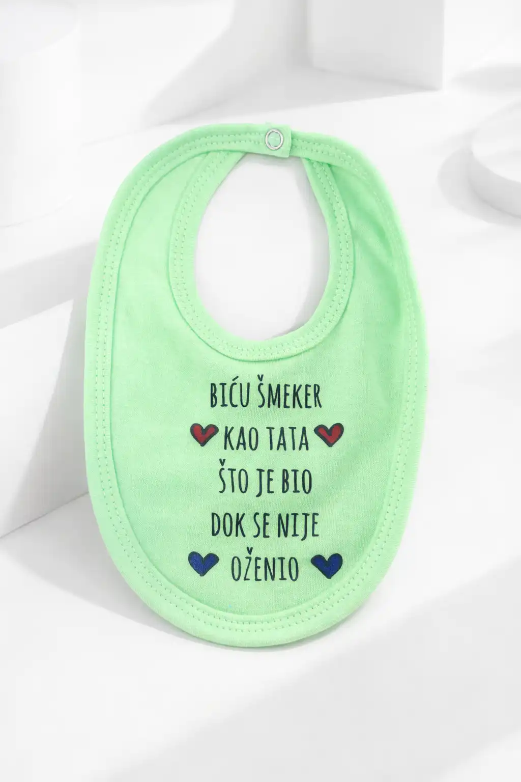 Portikla “Šmeker na tatu” od mekanog pamuka je praktičan i presladak dodatak za svakodnevne avanture vaše bebe 😎 Izrađena od kvalitetnog i nežnog materijala koji je prijatan za osetljivu bebinu kožu, pruža maksimalnu udobnost tokom hranjenja, igre i istraživanja sveta oko sebe 🍼 Tkanina je lagana, prozračna i dobro upija tečnost, pa pomaže da bebina garderoba ostane čista i suva. Jednostavno kopčanje omogućava brzo stavljanje i skidanje, dok simpatičan natpis daje poseban šarm i čini ovu portiklu savršenim poklonom ili slatkim detaljem za svakodnevni outfit 👶✨