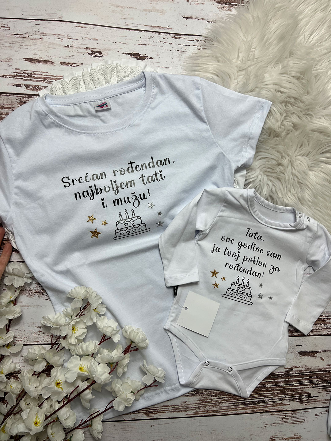 U nepomeni naznači ukoliko želiš uz majicu, da dodaš i bodić sa slike, kao i to u kojoj veličini , birate od 56 do 92, doplata za bodić je 850 dinara.