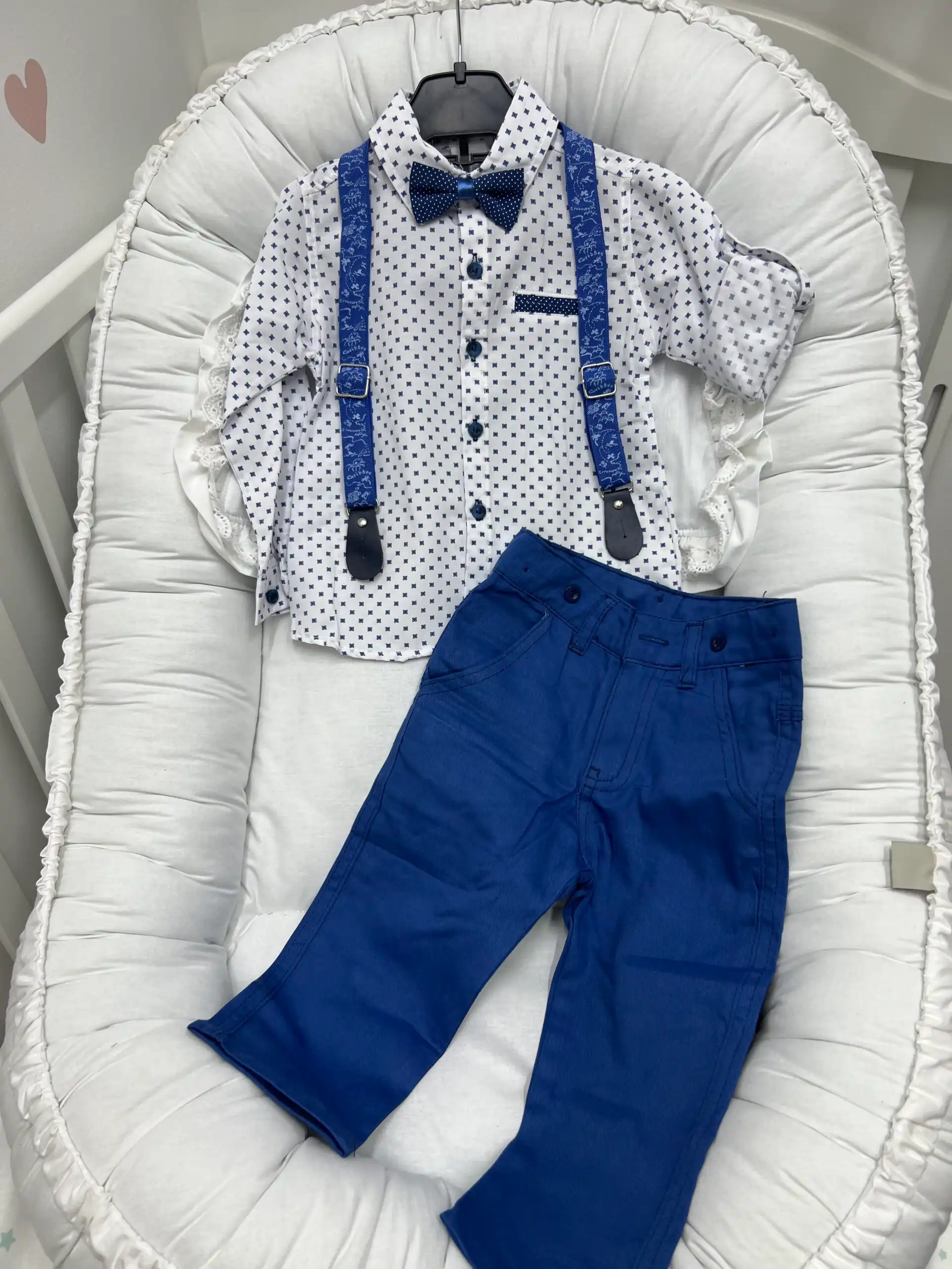 Košulja + leptir mašna + tregeri + pantalone – svečani set 4/1 za dečake bebe 👶🤍🎩