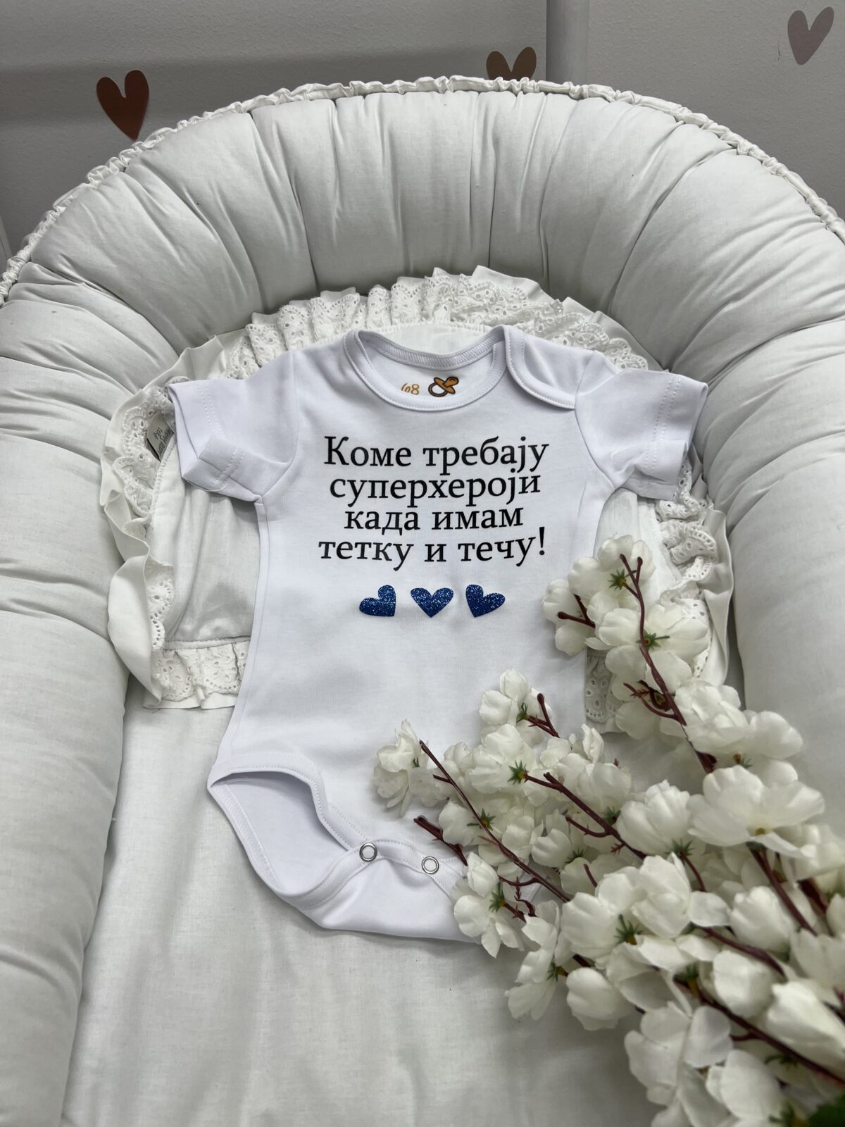 Nežan pamučni bodić sa dušom – posvećen tetki i teči, bebinoj omiljenoj superheroj ekipi! Bilo da piše „Tetka i Teča – moji superheroji“ ili neki drugi natpis po želji, ovaj bodić donosi osmeh i toplinu svaki put kada ga obučete. 🦸♀️🦸♂️💫