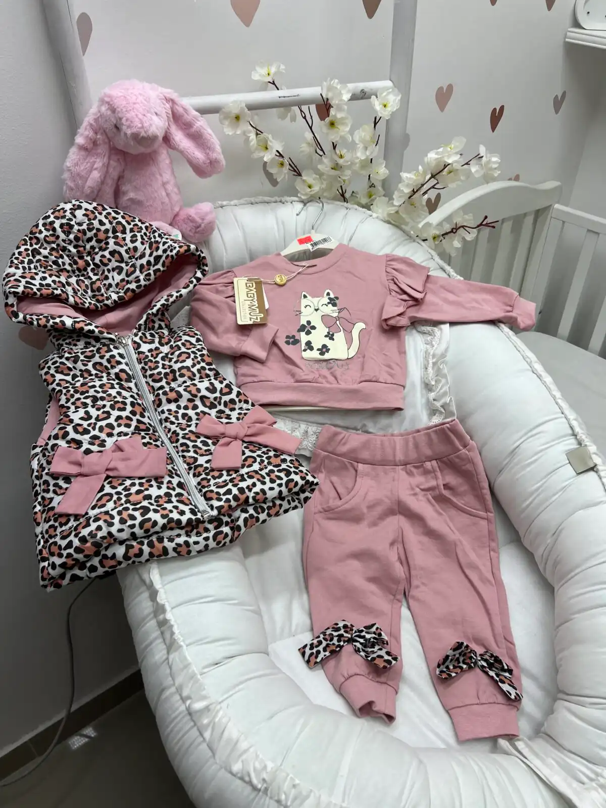 Komplet trenerka za bebe upotpunjena je sjajnim prslukom sa kapuljačom, koji daje moderan i poseban izgled celom setu ✨ Trenerka je izrađena od mekanog i prijatnog materijala koji pruža maksimalnu udobnost tokom celog dana 🌿