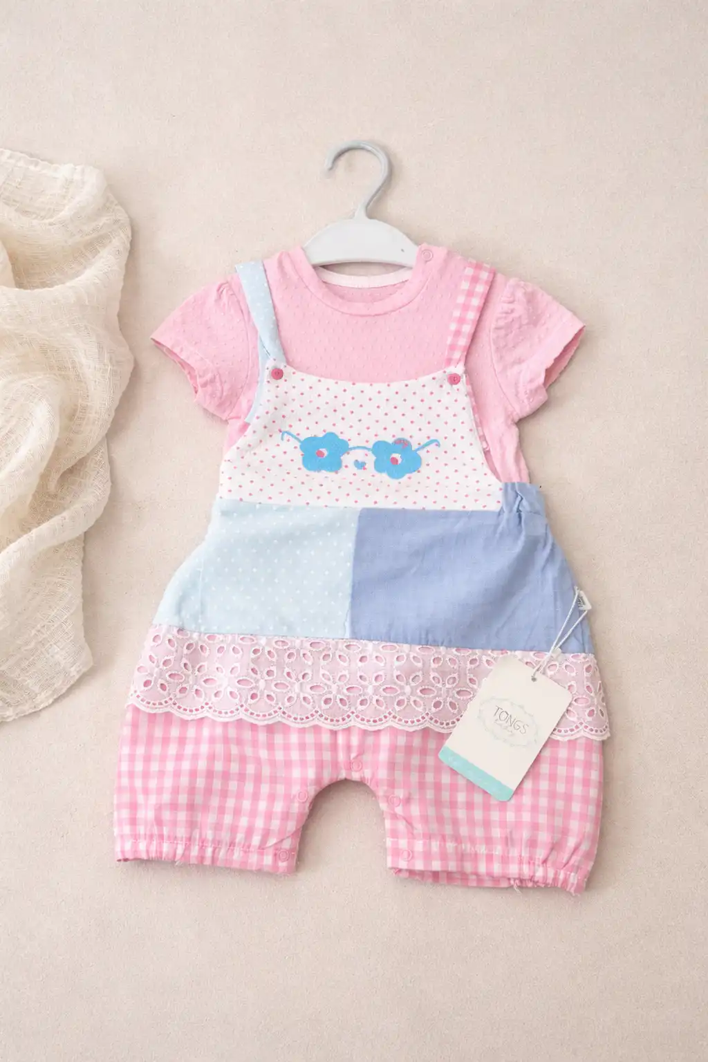 Komplet iz dva dela za bebe koji se sastoji od majice sa nežno zgužvanim rukavima i kao i slatke štramplice koja se nosi preko.