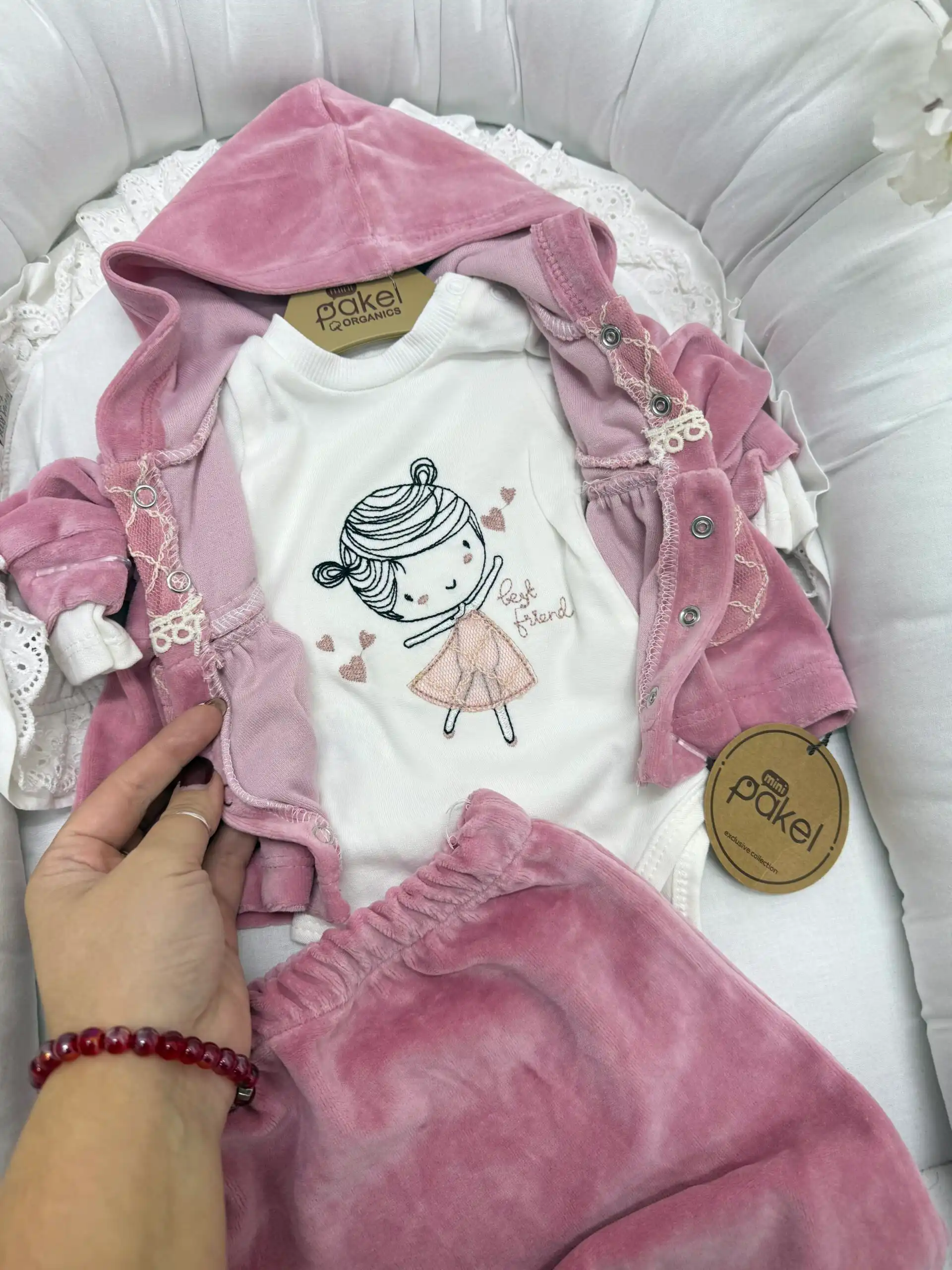Trodelni set za bebe koji se sastoji od duksića, bodija i donjeg dela. Gornji i donji deo izrađeni su od mekanog i toplog pliša, idealnog za hladnije dane, dok bodi obezbeđuje dodatnu udobnost i praktičnost. Set je nežan prema bebinoj koži, udoban za svakodnevno nošenje i jednostavan za oblačenje. Savršen izbor za šetnje, boravak kod kuće ili kao poklon 🤍🧸