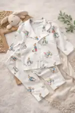 Bebi pidžamica sa kopčanjem napred od 100% pamuka, nežna i prijatna za osetljivu bebinu kožu.